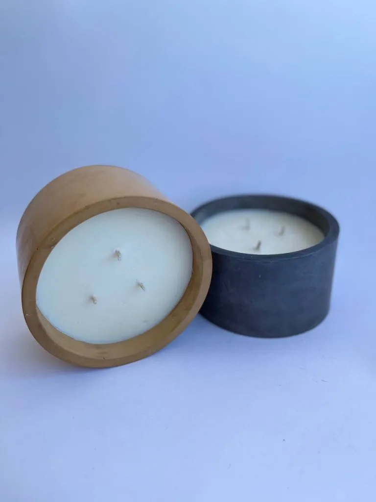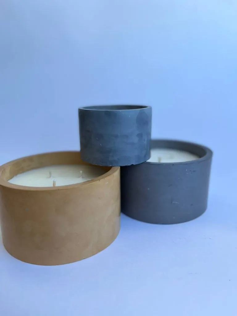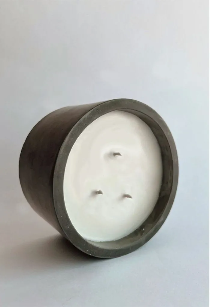 Ароматическая свеча из соевого воска в чаше из бетона.
