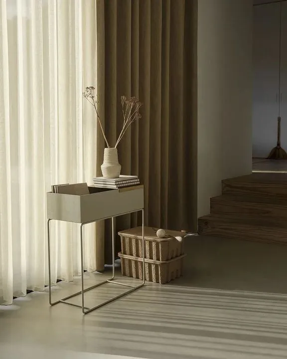 Короб Plant Box FERM LIVING можно использовать для украшения по всему дому: в качестве временного хранения в коридоре или в качестве разделителя для создания уютных уголков в больших комнатах. Они подходят для цветов, растений, книг, игрушек и журналов. Элегантная и вневременная эстетика, выраженная интересным контрастом между прямоугольным коробом и тонкими металлическими ножками.