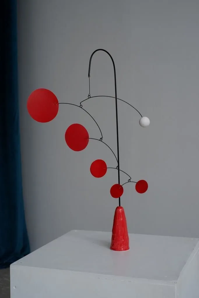 Настольный Мобиль Sunrise с основанием из керамики и лепестками и стержнем из крашенной стали.
