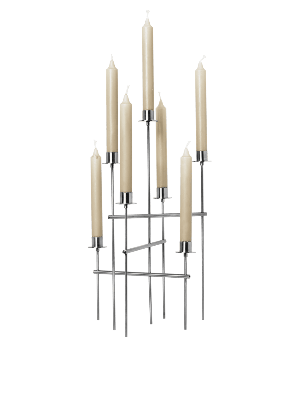 Подсвечник Elysia привносит в пространство легкость и воздушность благодаря своему тонкому каркасу из нержавеющей стали и мягкой матовой отделке. Изящная конструкция притягивает взгляд, создавая впечатление, что свечи парят в воздухе. Благодаря своей высокой, скульптурной форме он добавляет атмосферности любому помещению, сочетая элегантность и сдержанность.