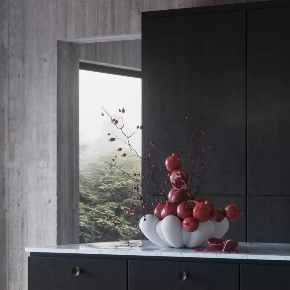 Bloom — это интерпретация цветочного дизайна 70-х годов. Плавно изогнутая поверхность контрастирует с четкой базовой геометрией и обогащается красивой игрой теней в углублениях поверхности. Благодаря своему выразительному дизайну блюда Bloom меняют внешний вид в течение дня в зависимости от положения света и тени.