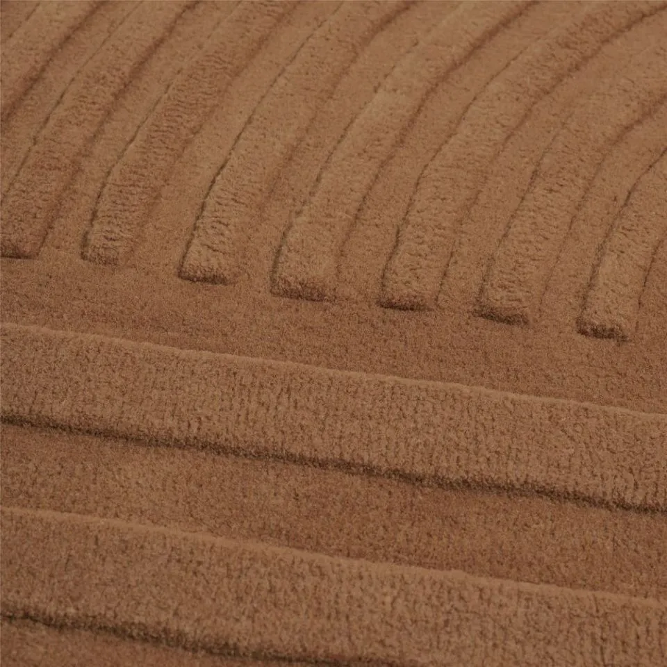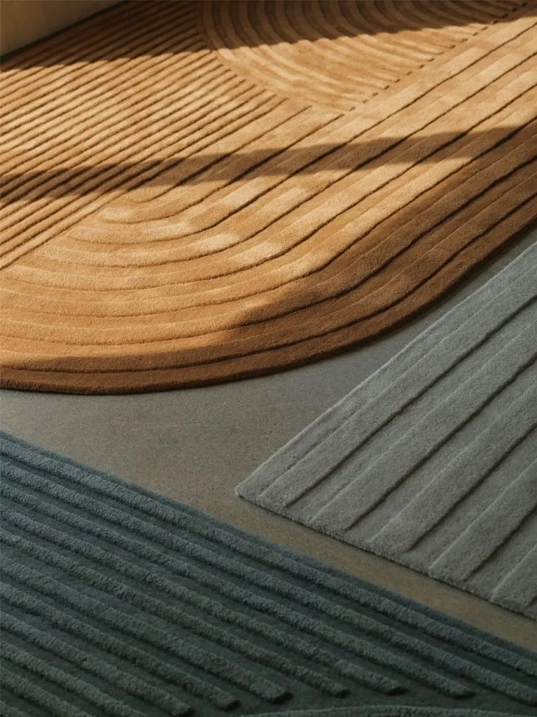 Relevo — это мягкий ковер с ярко-выраженной скульптурностью. Его поразительный графический рисунок создается путем обрезки тафтинговой шерсти на разных уровнях, что создает привлекательную игру теней, придающую ощущение двухцветности, а не монохромности. Единственный закругленный угол ковра добавляет ему уникальный характер.