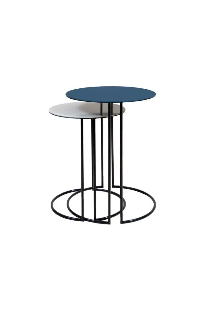 Этот дуэт столов из глянцевого и матового металла отличается яркими столешницами с порошковым покрытием. Гармоничная стальная конструкция подчеркивает округлые линии и включает в себя искусно расположенные ножки основания по обеим сторонам столешницы.