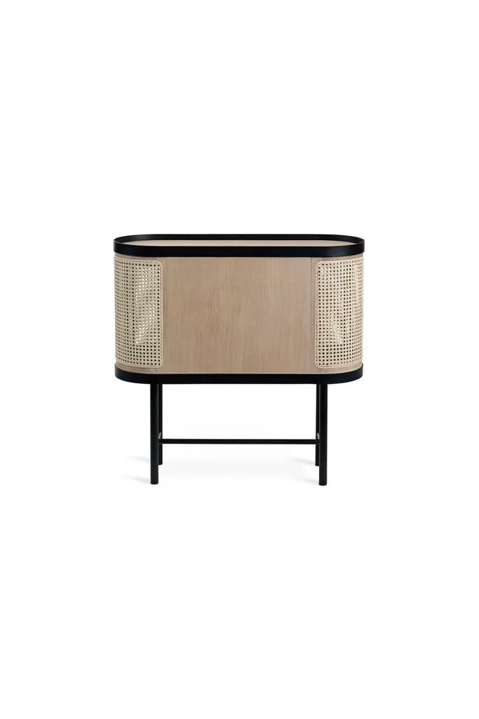 Барный шкаф Be My Guest можно использовать в нескольких комнатах дома, и он придется к месту повсюду благодаря своему уникальному дизайну и классическому выбору материалов, где французское плетение в сочетании с дубом обеспечивает теплое сияние. Классические черты дополнительно подчеркиваются закругленными углами, которые придают барному шкафу Be My Guest мягкость. Органичный дизайн в сочетании с простой рамкой из черного металла обеспечивает легкий внешний вид, а овальная столешница не только красива для подачи напитков, но и позволяет демонстрировать книги, растения в интерьере как уютный натюрморт. Классический дизайн в сочетании с современной изысканностью позволяет барному шкафу Be My Guest легко вписаться в современный интерьер.