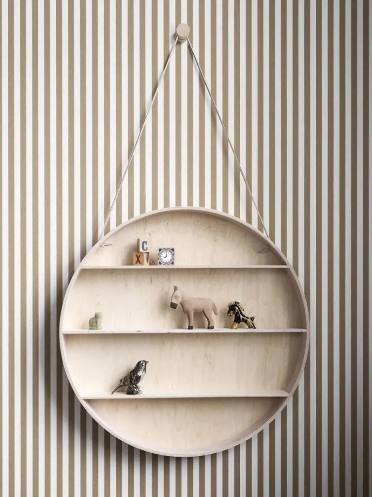 Аккуратные полочки, вписанные в круг, подойдут под любой интерьер и придадут стене элегантный и уникальный вид. Используйте ее для хранения всех ваших любимых мелочей. Она изготовлена из буковой и березовой фанеры, висит на кожаном шнурке и снабжена буковым крючком.