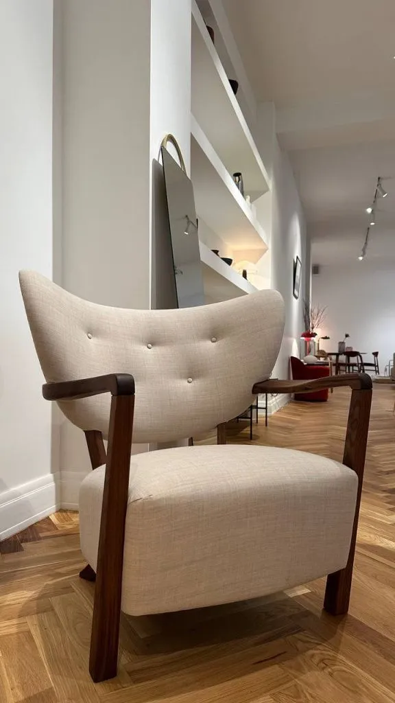 Кресло для отдыха Wulff, первоначально изготовленное в традиционной датской мастерской в первой половине 20-го века краснодеревщиком Йоргеном Вольфом, является ярким примером дизайнерского движения «Датский модерн». Сложности ручного мелкосерийного производства очевидны в его форме: раздвигающие границы скульптурные подлокотники, которые соединяются с широкой спинкой в форме крыла, подкреплены высочайшим мастерством. Стул, неподвластной времени архитектурной формы, переизданный фабрикой &Tradition для современной публики, добавит стильный акцент в любой интерьер.