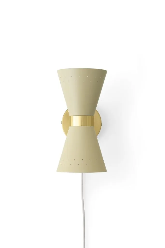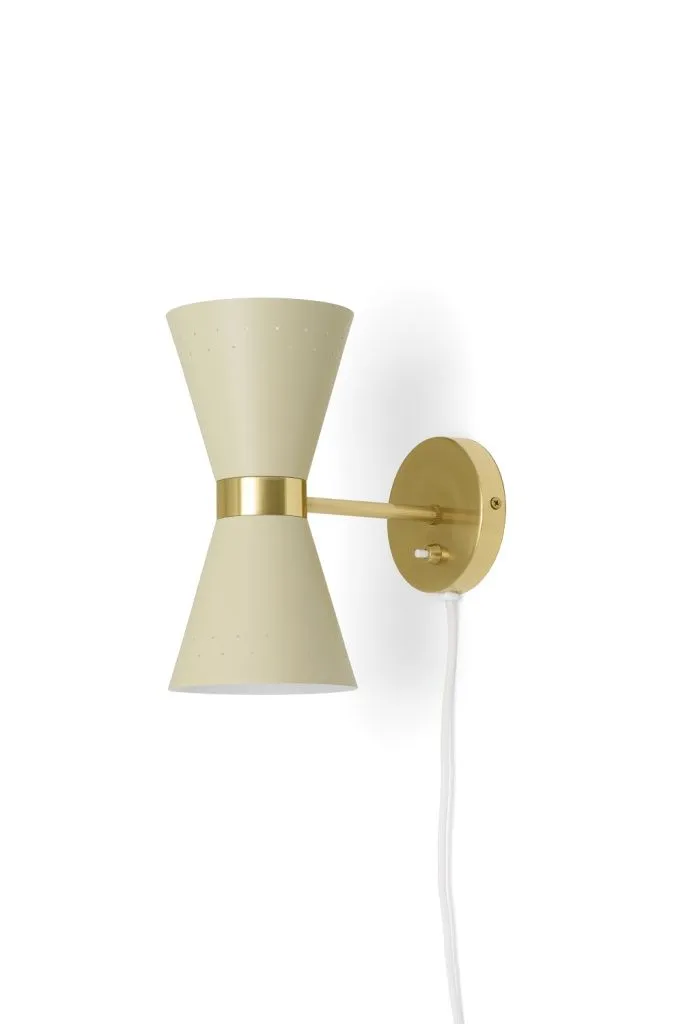 Настенный светильник отличается прочной латунной лентой, которая держит конический металлический абажур, излучающий свет в двух направлениях.