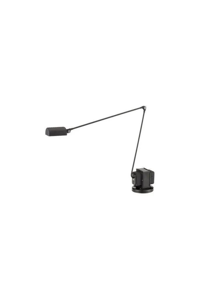 Он имеет вращающийся на 360° абажур, шарнирный рычаг, состоящий из двух сегментов (35 см и 40 см), опирающийся на круглое и плоское основание, увенчанное трансформатором. Эта функциональная и дизайнерская настольная лампа с регулируемой яркостью позволяет светить в любом направлении с желаемой интенсивностью.