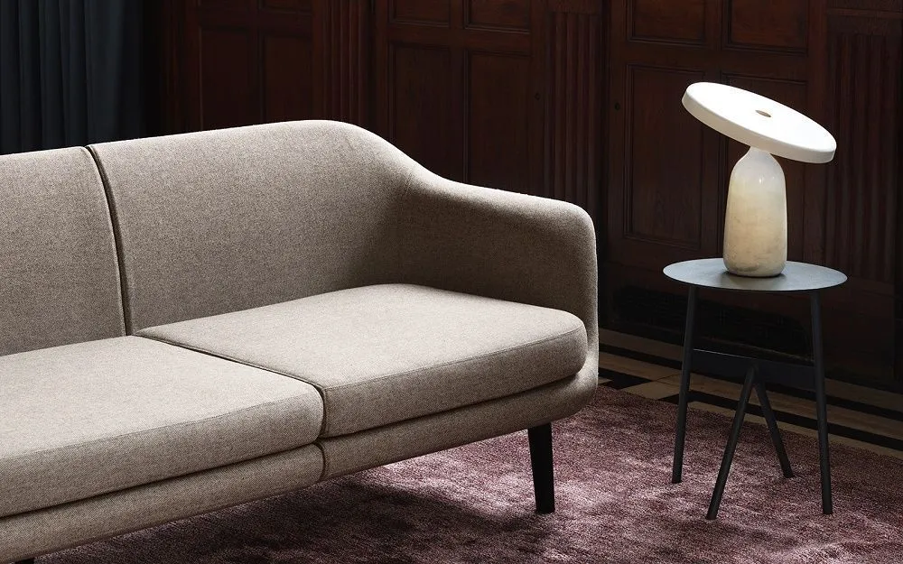 Абажур и цоколь встречаются в золотой точке вращения в виде глянцевого латунного шара, при помощи которого легко контролировать направление света и тени. Eddy освещает не только свое окружение, но и самого себя. Его свет падает на мрамор, подчеркивая меняющийся характер материала. Настольная лампа излучает мягкий свет, который можно регулировать с помощью круглого латунного диммера, образующего изысканную деталь на верхней части абажура.