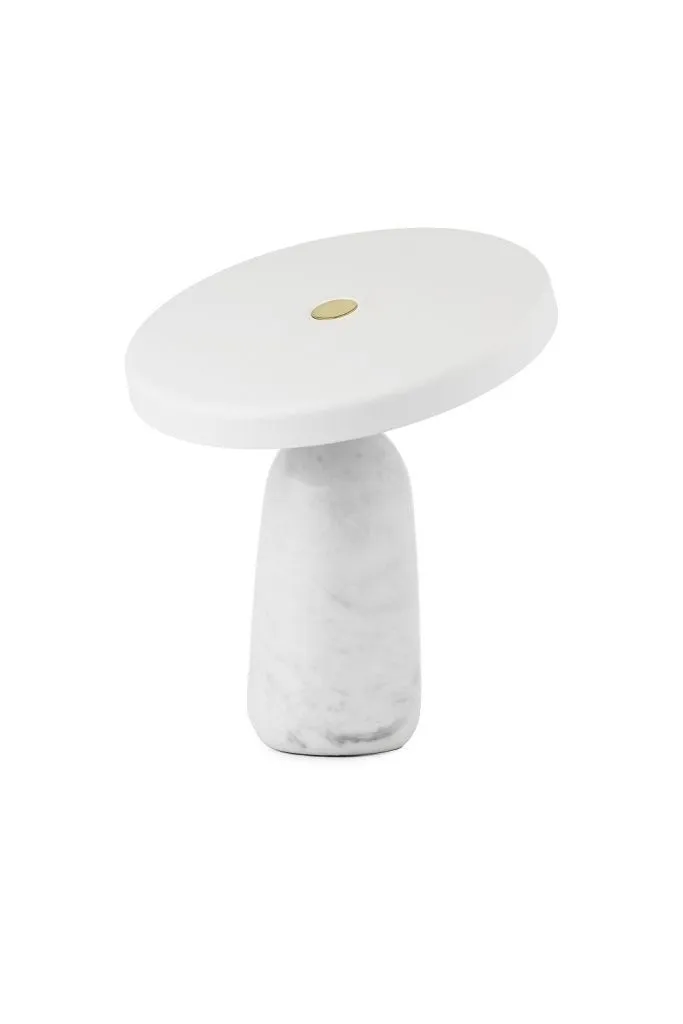 Настольная лампа Eddy от Normann Copenhagen - это искусство пропорций: воздушный абажур парит над массивным, органичным основанием, создавая гармоничный и динамичный дизайн. Сталь и мрамор составляют основные элементы, а золотые отливы латуни расставляют элегантные акценты на этой атмосферной лампе.