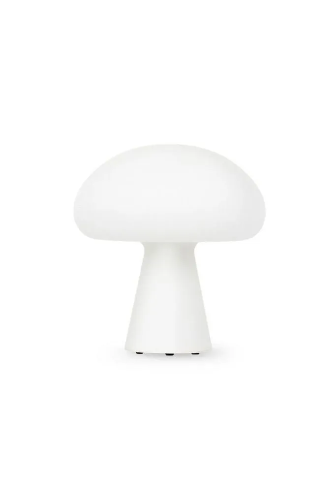 Благодаря абажуру из матового выдувного стекла и встроенному регулируемому светодиодному источнику света, перезаряжаемую лампу можно легко перемещать из помещения в помещение и использовать на улице.