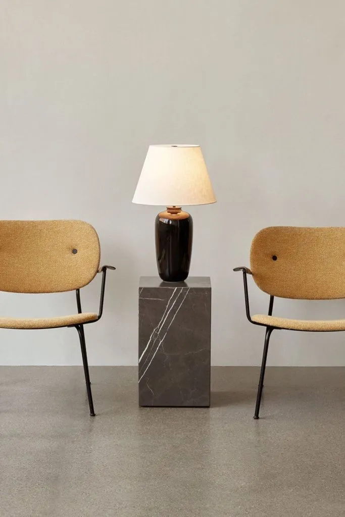 Преобразующая сила света ярко проявляется в настольной лампе Torso от MENU, дизайн которой неподвластен времени и подходит для любой обстановки. Удлиненная основа, отлитая из керамогранита с черной глазуровкой для создания сдержанного и скульптурного образа. Льняной оттенок абажура мягко рассеивает свет, мгновенно создавая уютную атмосферу. Сенсорный диммер из латуни позволяет сделать индивидуальную настройку яркости освещения. Дизайн: Kroyer Saetter Lassen.