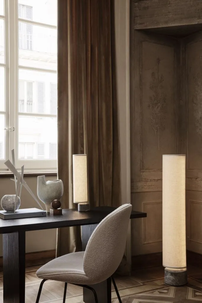 Дизайн - это баланс между элегантным и искусным, изысканным и наивным. Настольный светильник Unbound Table от GUBI - характерный тому пример. Приятно серьезно относиться к скульптурному элементу и понимать, что свет предназначен не только для решения практических задач, но и для создания ощущения покоя и гармонии, необходимых для идеально сбалансированного пространства. Каплевидное серое мраморное основание действует как якорь, олицетворяя неподвижность и вес. Легкий, вращающийся плафон той же формы из белого льна или натурального холста кажется невесомым и непостоянным - он идеально выравнивается по основанию только один раз на каждые 360° поворота и олицетворяет стильную асимметрию. Что характерно, Unbound создает анимированную скульптуру даже в выключенном состоянии. Таким образом, изменение угла и положения лампы незаметно изменяет воздействие всего ансамбля на общее настроение пространства.