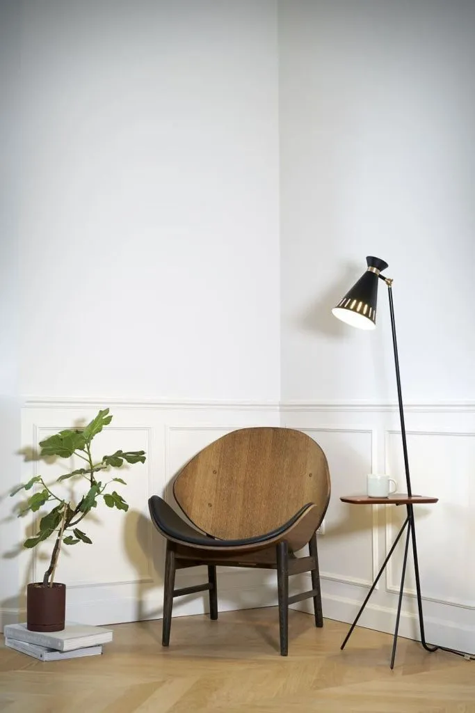 Классический торшер с небольшой встроенной полкой в элегантном дизайне 1950-х годов, созданный всемирно известным дизайнером по свету Свендом Оге Холм-Соренсеном (Svend Aage Holm-Sorensen) в 1954 году. Стол-полка на торшере Cone — очаровательная старинная деталь, которая так и просится под чашечку кофе или мобильный телефон.