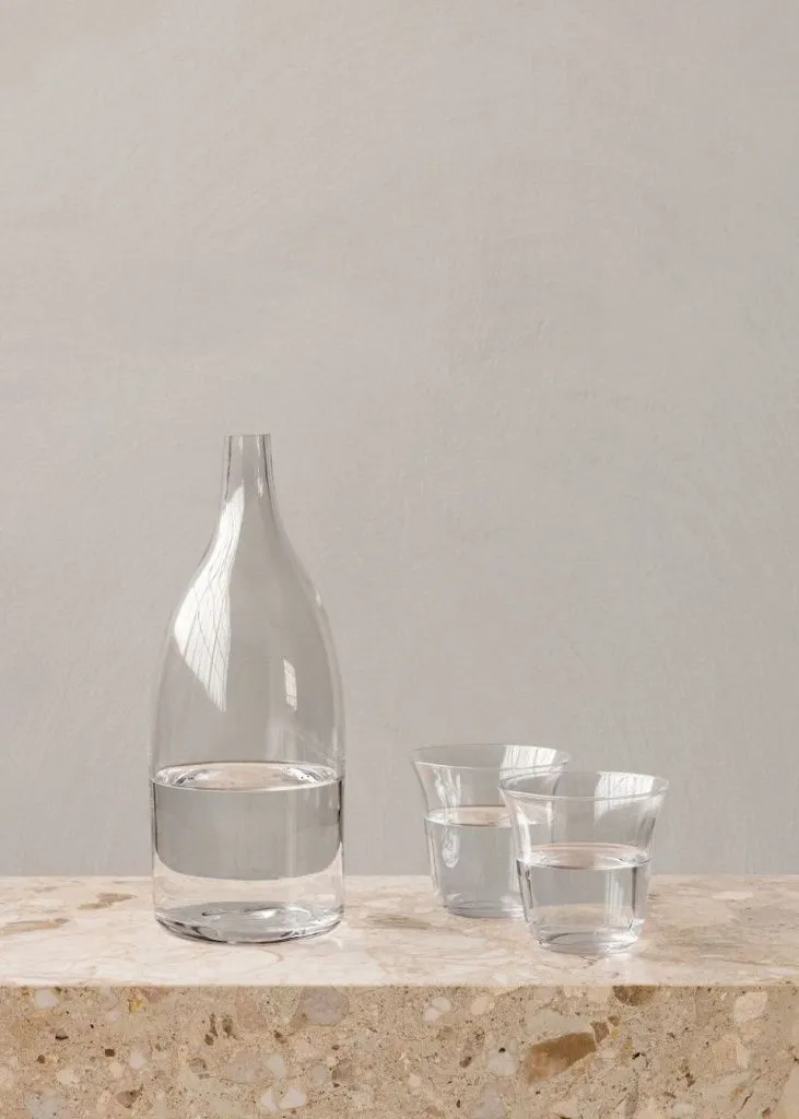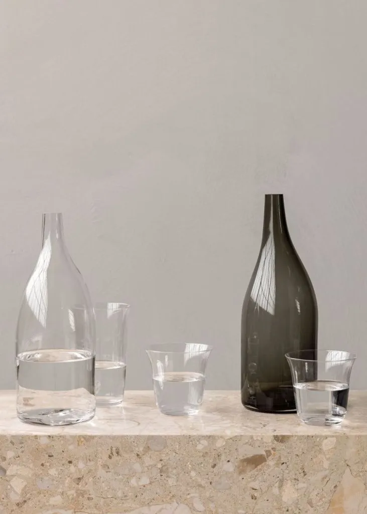 Графин Strandgade из выдувного стекла имеет асимметричный силуэт, который удобно лежит в руке, позволяя легко наливать жидкости. Созданный для подачи холодных напитков, он наполнен функциональностью и ностальгией.