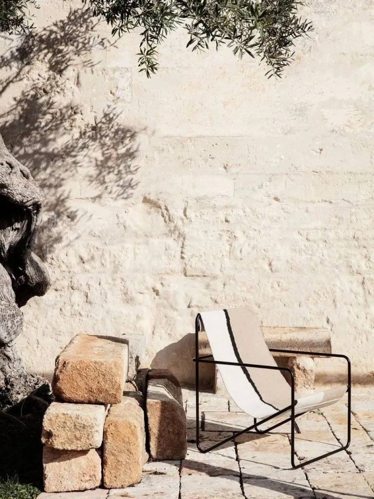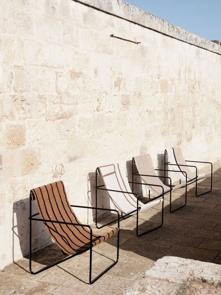Модернистское кресло с изящным профилем Desert Lounge Chair от FERM LIVING изготовлено из трубчатого стального каркаса с порошковым покрытием. Съемное сиденье сплетено вручную из пряжи ПЭТ из переработанного пластика, что соответствует 53 пластиковым бутылкам. Кресло подходит для использования как в помещении, так и на улице.