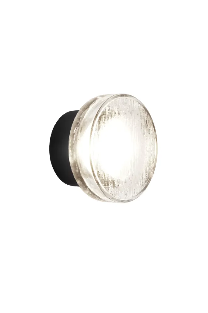 Компактный настенный светильник Roc MARSET для дома и улицы с плафоном из прессованного стекла, рельефная поверхность которого красиво преломляет свет, делая его мягким и комфортным. Светильник, который не только освещает пространство, но и создает особую атмосферу. Он выглядит как яркая глыба льда, и его неправильная, почти органическая текстура так и манит прикоснуться к нему. Дизайн: Joan Gaspar.