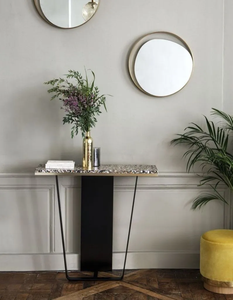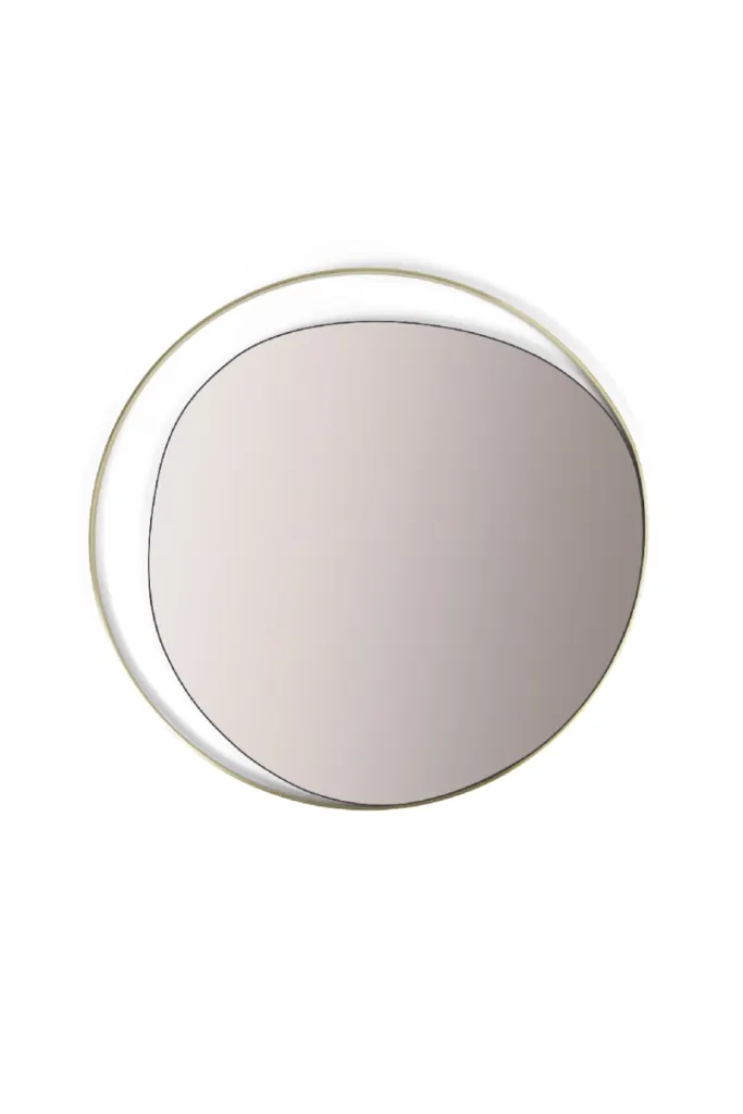 Перед вами зеркало, которое с легкостью подвергает сомнению совершенство круга. Его дизайн чувственен и бесконечен. Зеркало сделано в дымчатом стекле, окруженном изящным большим латунным кольцом. Это зеркало выполнено с большим вниманием к деталям, что делает его больше чем просто зеркало, это - настенная скульптура и настоящий праздник для глаз.