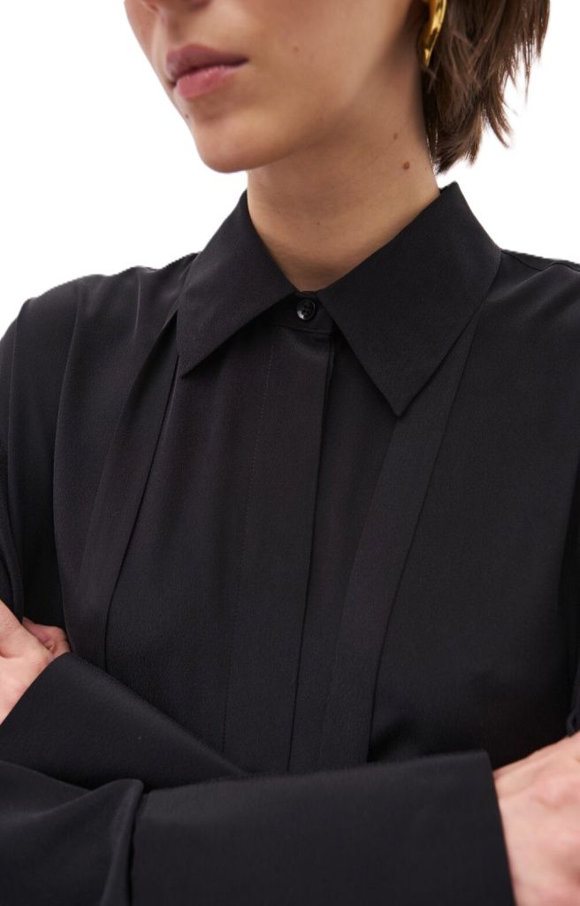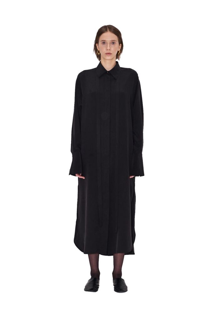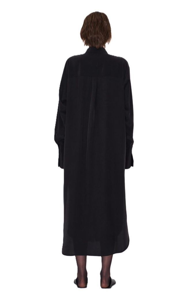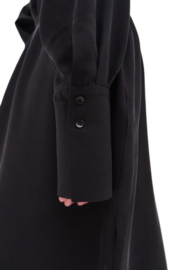 Платье-рубашка из матового шелка с эффектом «мокрый шелк» с супатной застежкой и карманами.