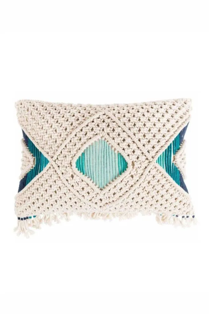 Подушка Evi от ZUIVER - это подушка в стиле Ибицы и Марракеша, украшенная синей строчкой, бахромой и кисточками, узорами макраме ручной работы. Привлекает внимание и идеально подходит для украшения вашего дивана или кровати.