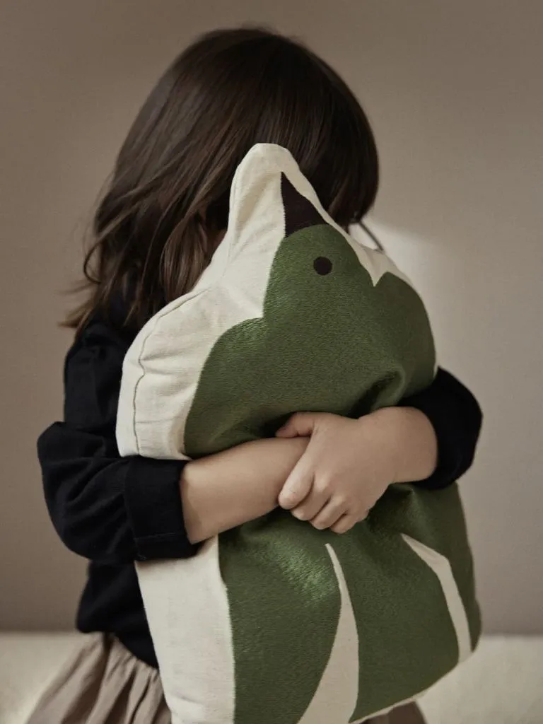 Эта подушка, изготовленная из неокрашенного органического хлопка в форме птицы и украшенная плотной богатой вышивкой, отражает суть игривой элегантности. Она, обеспечивает уют и комфорт и идеально подходит для уголка для чтения или в качестве характерного акцента на кровати или диване.